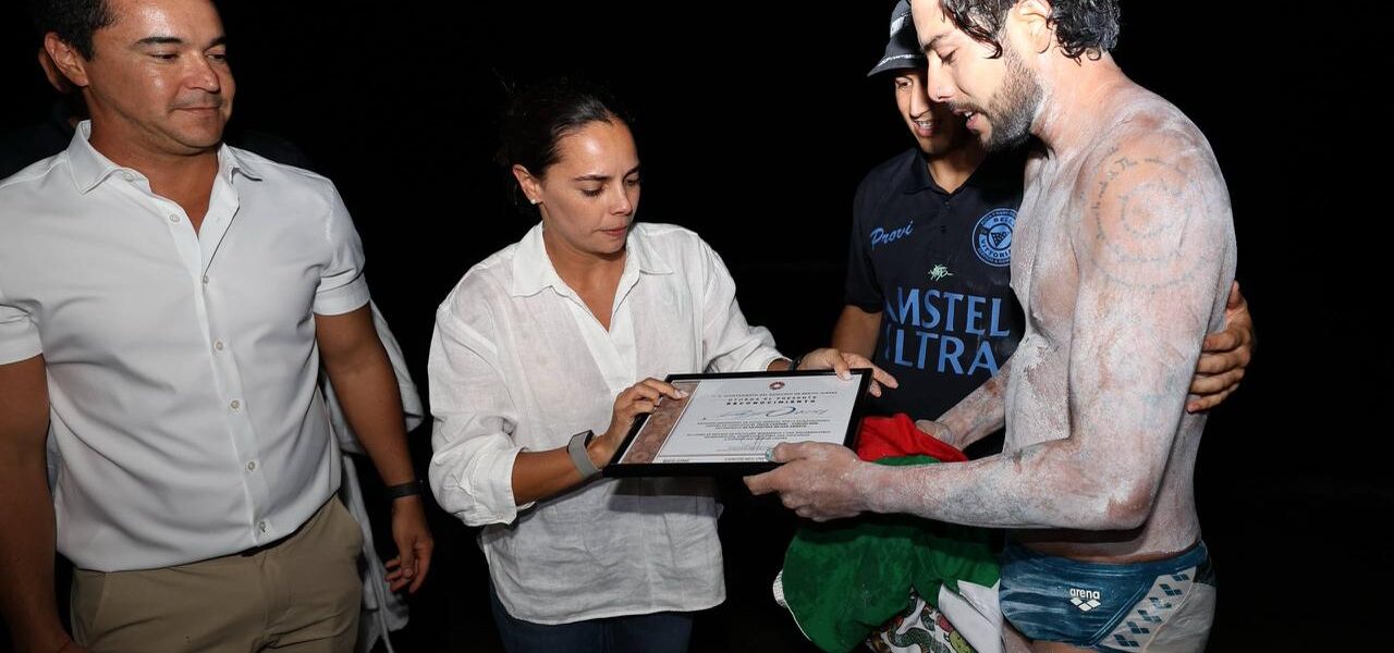 #DEPORTES | La Presidenta Municipal, Ana Paty Peralta, recibió al nadador profesional de ultradistancia David Olvera, tras lograr la extraordinaria hazaña de cruzar el Mar Caribe en el reto Cozumel a Cancún, consolidando un hecho histórico en la natación de aguas abiertas en México.